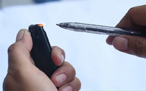 Đưa đầu bút lại gần lửa trong 2–3 giây, tránh để quá lâu. Nhiệt làm tan mực khô, giúp dòng chảy ổn định.