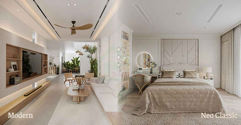Phong cách thiết kế: hiện đại, tối giản, tân cổ điển… mỗi phong cách yêu cầu mức đầu tư khác nhau.