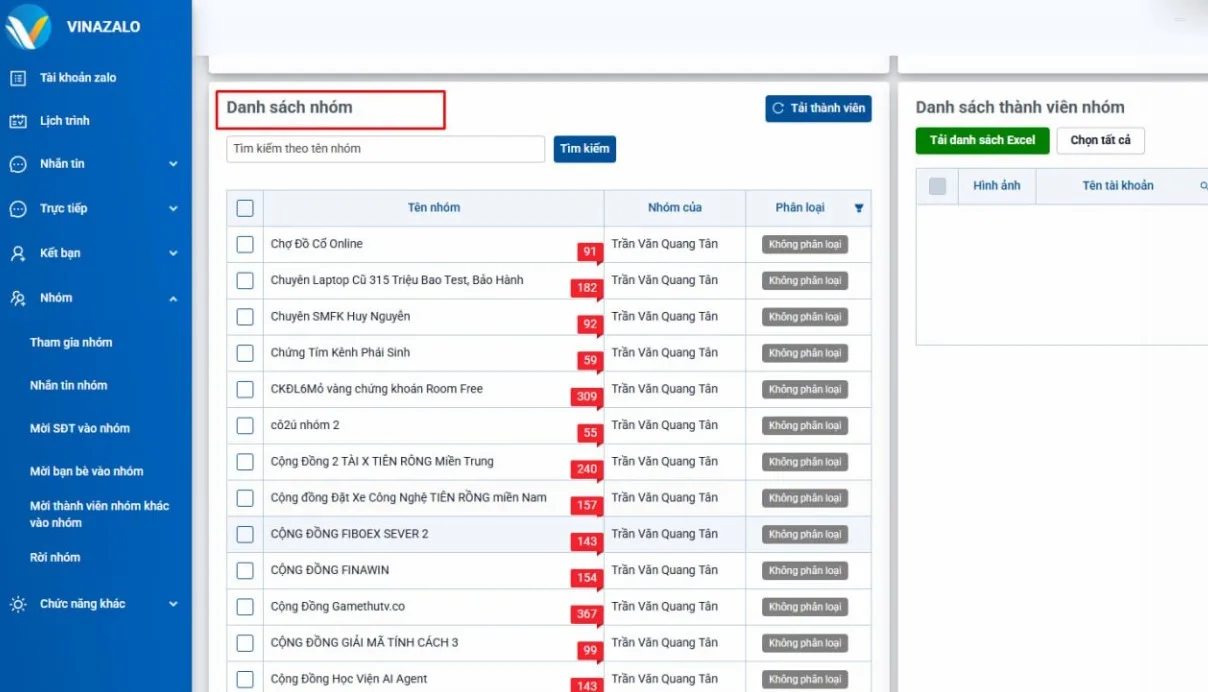 Cách lấy danh sách nhóm Zalo đã tham gia tự động bằng phần mềm Vina Zalo