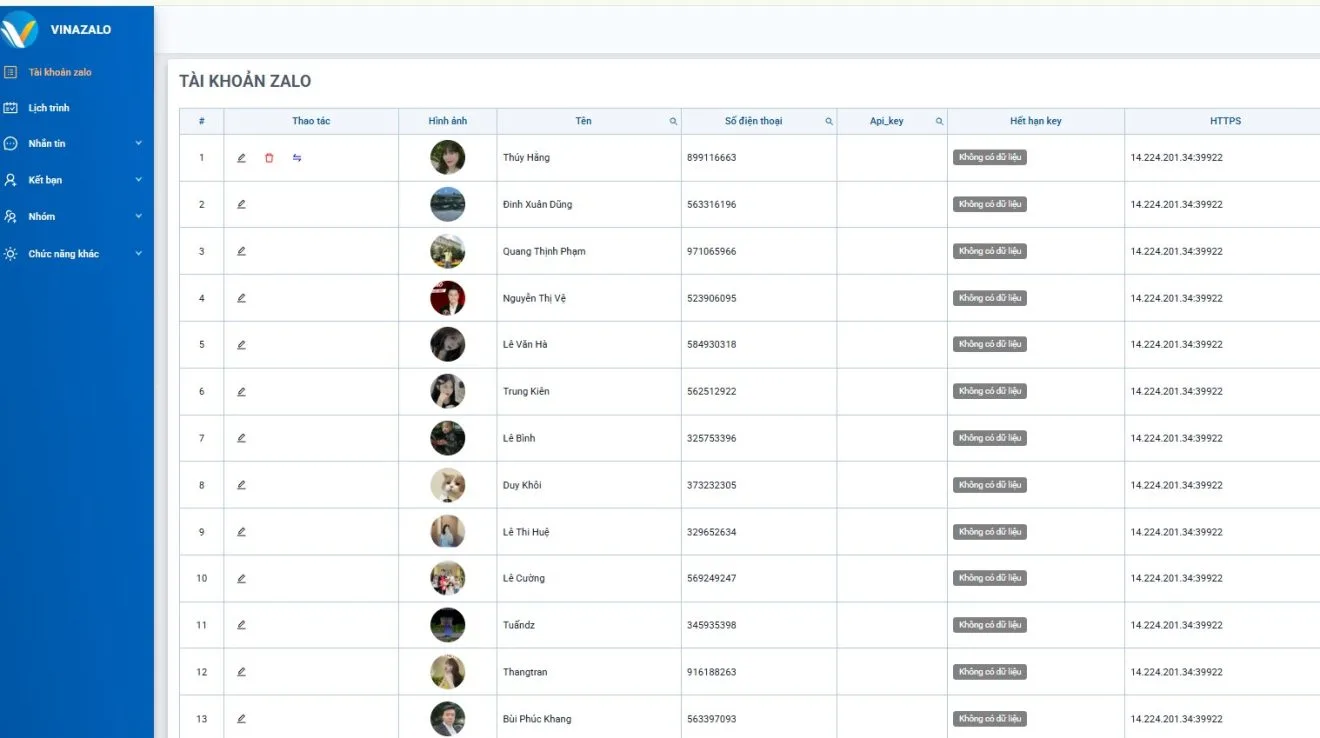 Quản lý và vận hành nhiều tài khoản Zalo cùng lúc.