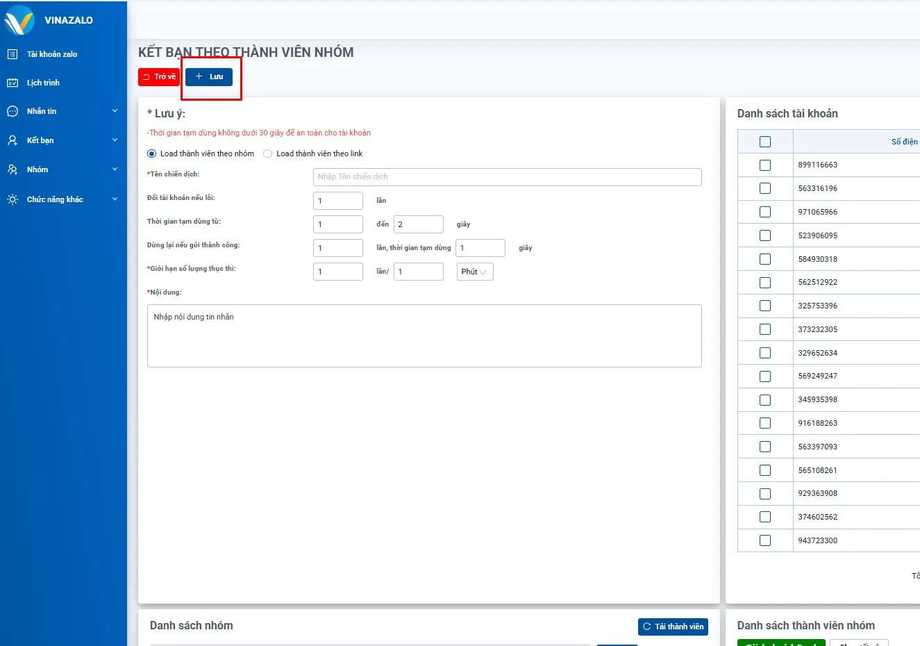 Kết bạn Zalo hàng loạt theo số điện thoại.