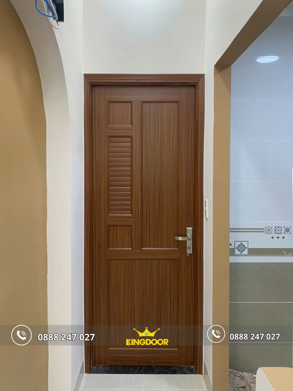 - Cửa nhà vệ sinh – phòng tắm: Khả năng chống nước tốt, không cong vênh, không mối mọt – lựa chọn tối ưu cho môi trường ẩm.