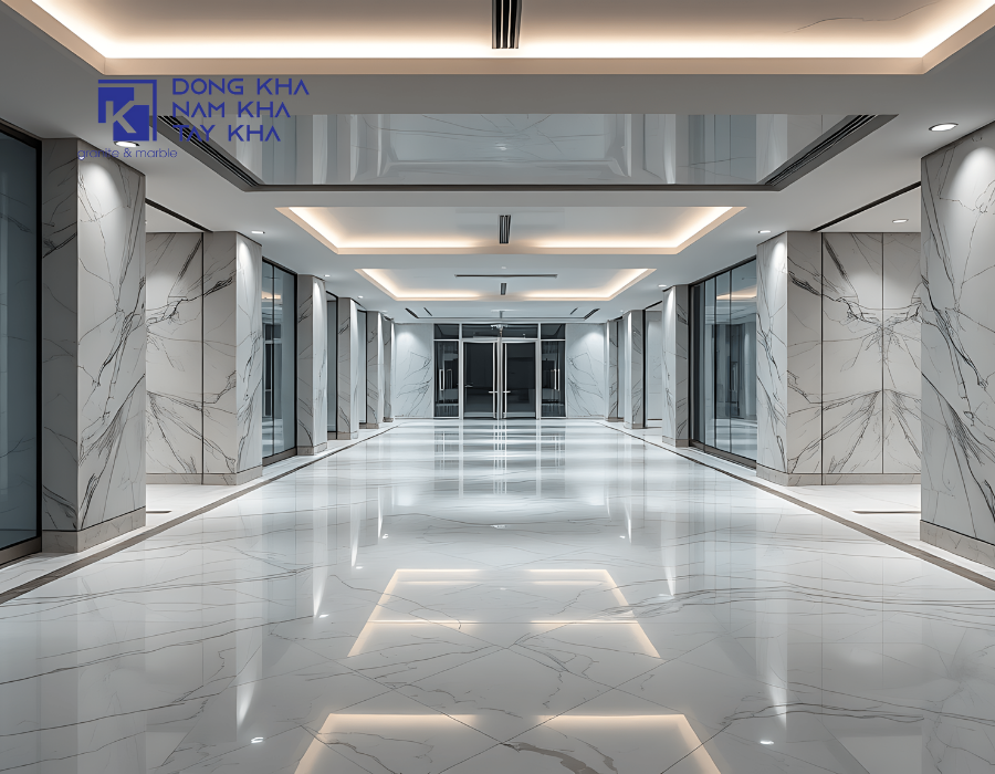 - Đá marble (cẩm thạch): nổi bật bởi vân đá tự nhiên độc nhất, tạo sự sang trọng cho sảnh, phòng khách, ốp tường.