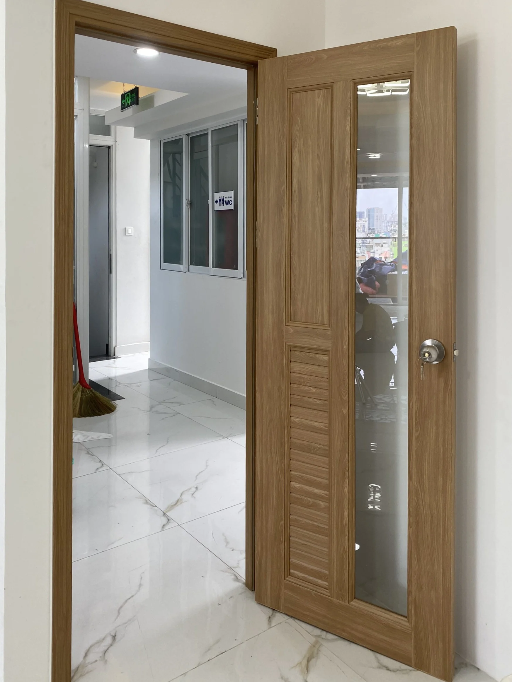 - Lý do: Cửa nhựa dễ vệ sinh, chịu được môi trường ẩm hoặc nhiều bụi, phù hợp cho khu vực chức năng phụ.