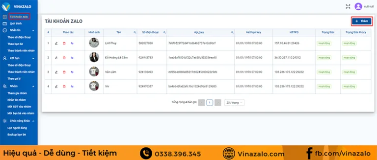 Quản lý tài khoản bằng phần mềm VinaZalo