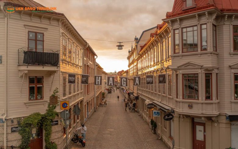 Tiếp tục hành trình lên phía Bắc, chúng tôi ghé thăm Gothenburg, thành phố lớn thứ hai của Thụy Điển. Tại đây, khu phố cổ Haga là nơi tôi thích nhất. Những con đường lát đá cuội, những ngôi nhà gỗ cổ điển và hương thơm của bánh quế (Cinnamon roll) lan tỏa từ các tiệm cà phê nhỏ xinh. Đừng quên thử trải nghiệm Fika văn hóa uống cà phê thư giãn của người Thụy Điển tại đây.