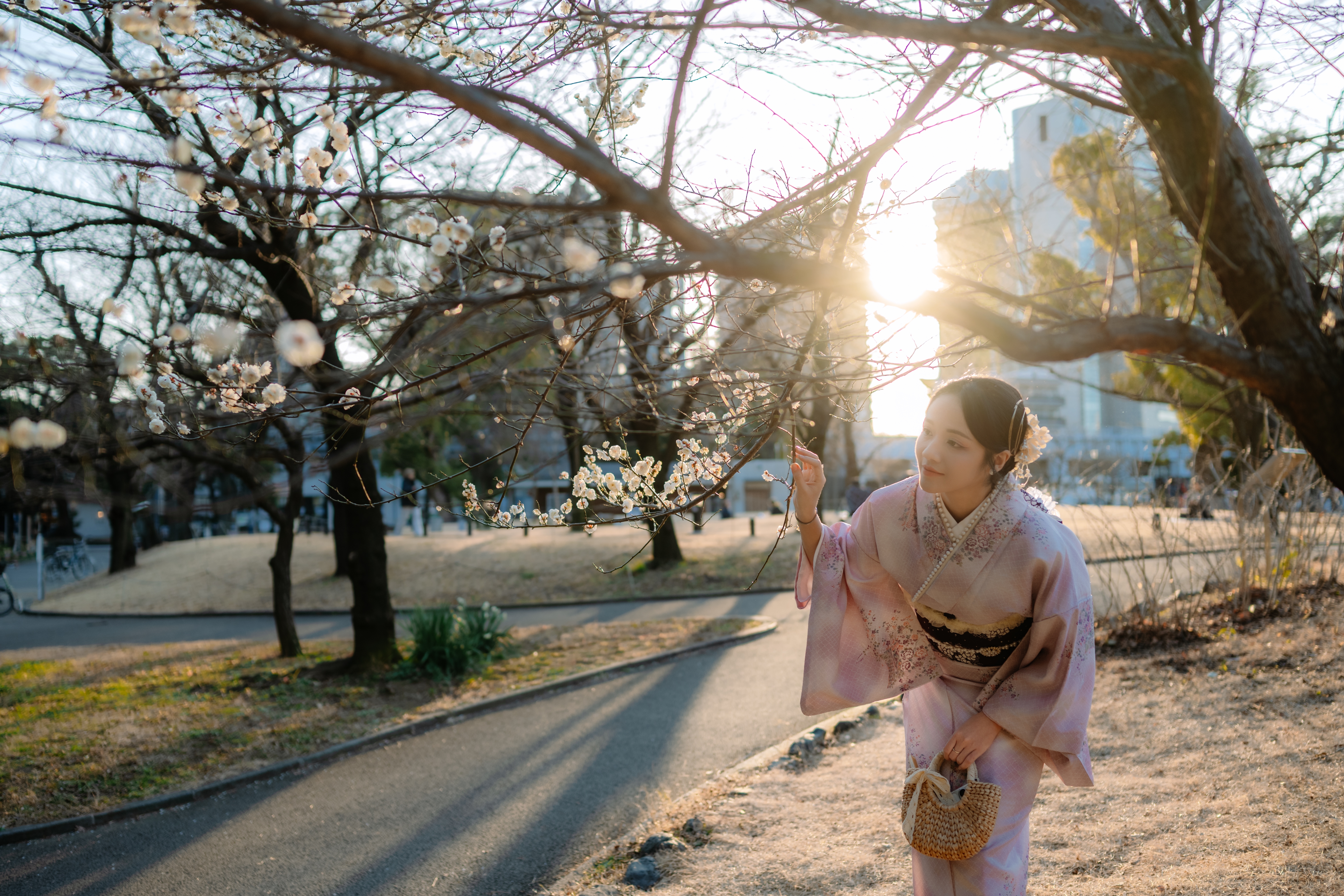 Không chỉ vậy, ánh sáng mùa xuân dịu nhẹ cũng góp phần làm nổi bật vẻ đẹp của khung cảnh. Những tia nắng len lỏi qua tán hoa, chiếu xuống bộ kimono, tạo nên những hiệu ứng ánh sáng vô cùng ấn tượng. Đây chính là điều mà các nhiếp ảnh gia luôn tìm kiếm – một khoảnh khắc hoàn hảo mà thiên nhiên và con người hòa làm một.