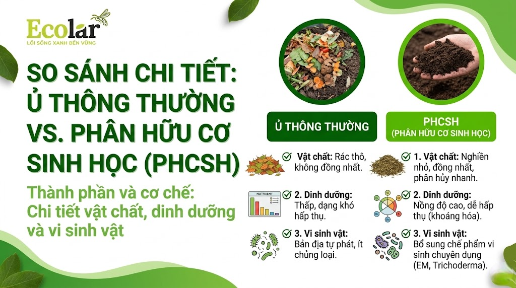 2. Thành phần và cơ chế: So sánh chi tiết về vật chất, dinh dưỡng và vi sinh vật