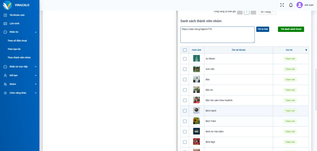 - Xây dựng và kéo thành viên cho nhóm Zalo