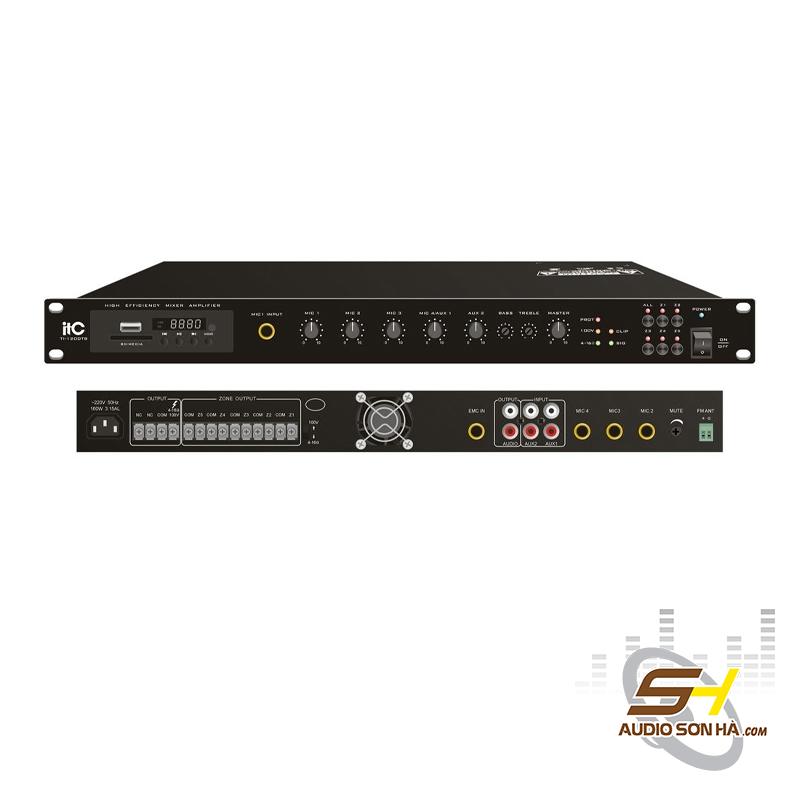 ITC TI-1206S 120W, 6 vùng độc lập. Tính năng: MP3 LCD, FM/Bluetooth, general alarm. Lợi ích: Bass đều, ưu tiên EMC, cho cửa hàng lớn. Tần 80Hz-16kHz, 6.7kg. Giá liên hệ.