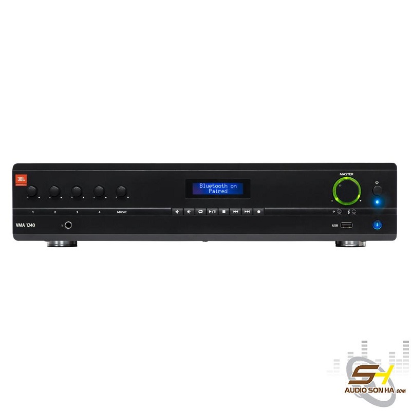 JBL VMA 1240 là amply đa vùng 240W, 5 input mixing. Tính năng: Bluetooth/USB player, per-channel EQ, rack-mount. Lợi ích: Bass uy lực, dễ remote, cho gym/retail. SNR >76dB, trọng lượng 11.6kg. Giá liên hệ.